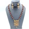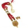Gold Plated and Pearl Necklace with locket & Earrings Set. beautiful Pearl Jewelry set is made with small shining pearl beads, stones and fashionable detailed oval-shaped floral pendant with a rich stone embedded beautifully in between the pendant.