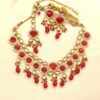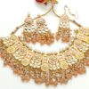 STYLE: Kundan Choker with american diamond finishing around the colored stone featuring oval & square shape which is further embellished with big kundan & semi precious stones. Necklace comes along earrings & maangtikka. Adjustable neckband. Premium Quality. Rarely available online. For modern/Traditional & Fusion.