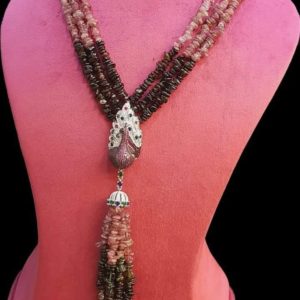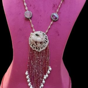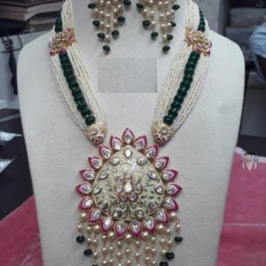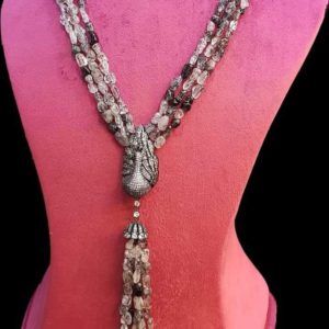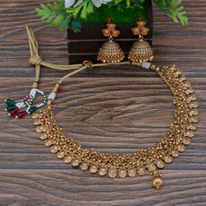 Floral design Antique necklace-Jhumki earings set with beaded tussel